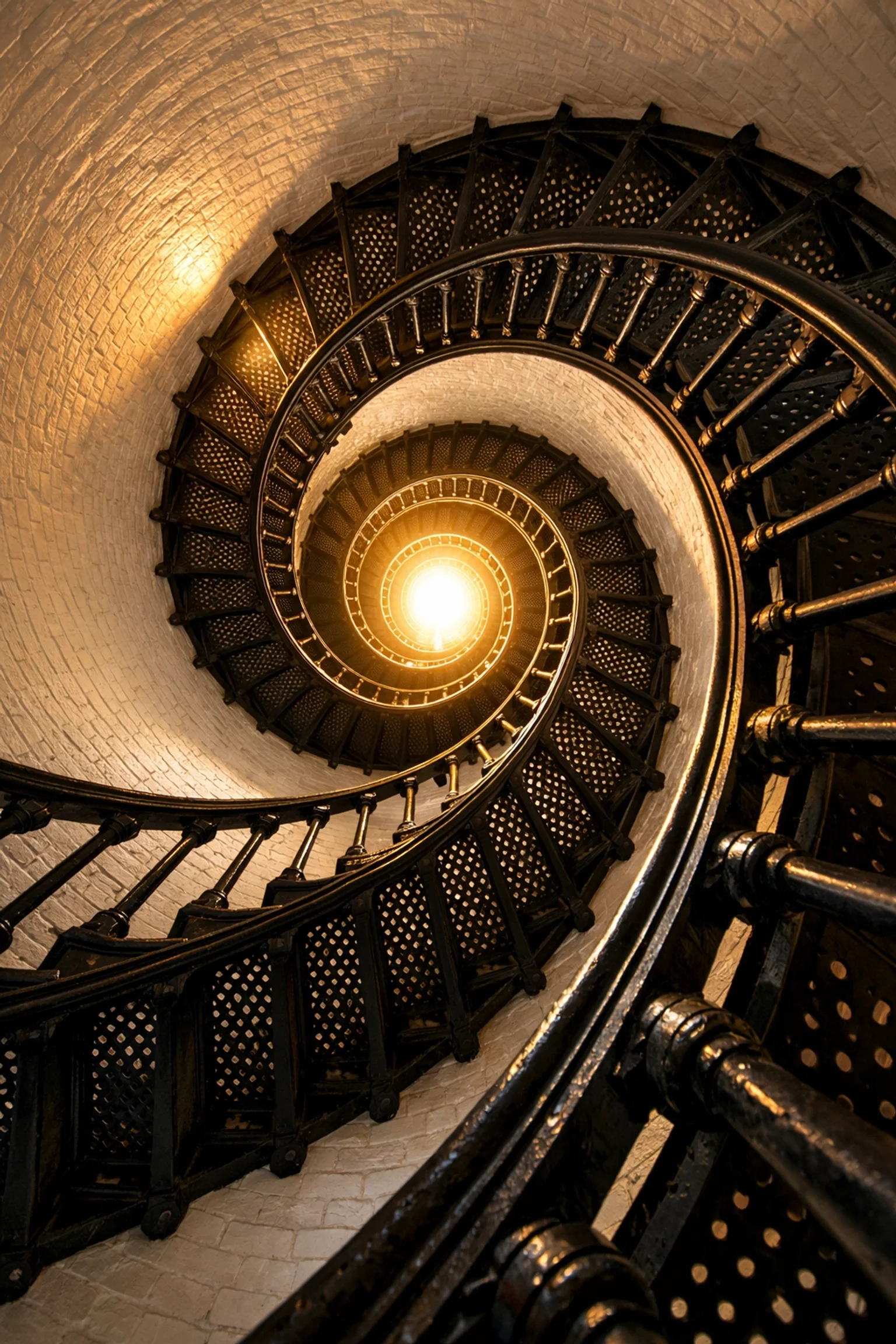 Climbing the 129 cast-iron steps inside the St. Simons Island Lighthouse.