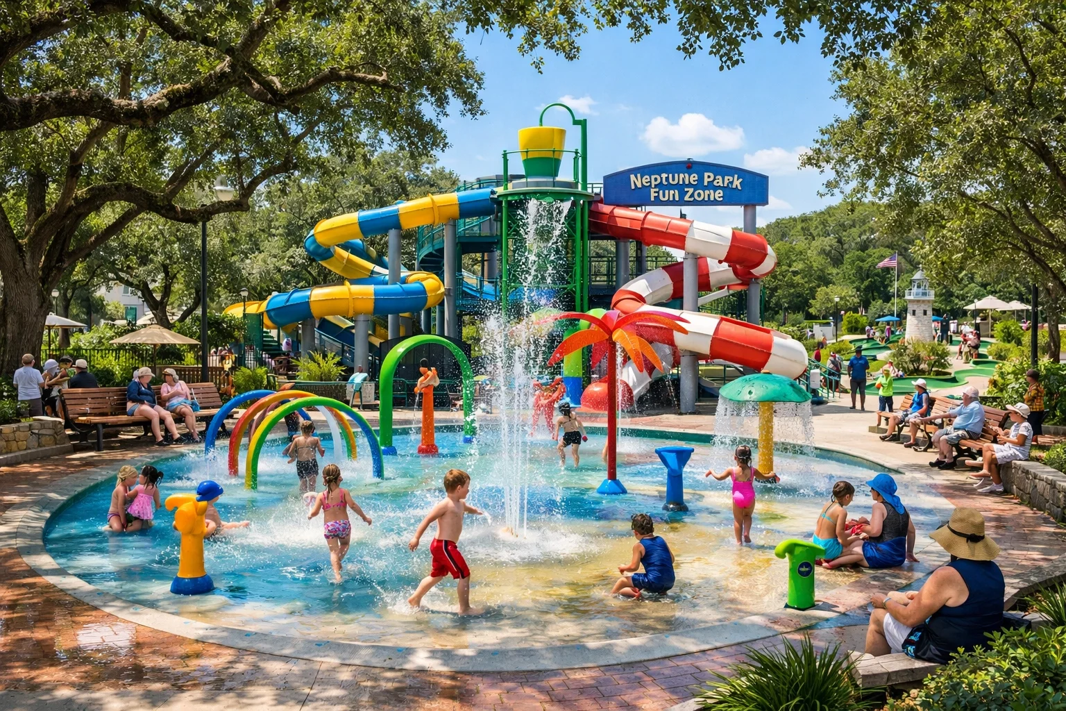 What makes Neptune Park work so well for families? Lifeguards, clean restrooms, plenty of shade from massive oak trees, and everything's walkable. You can let the kids burn energy on the playground, grab a snack, play a round of mini golf, and still have time for the beach, all without getting back in the car.